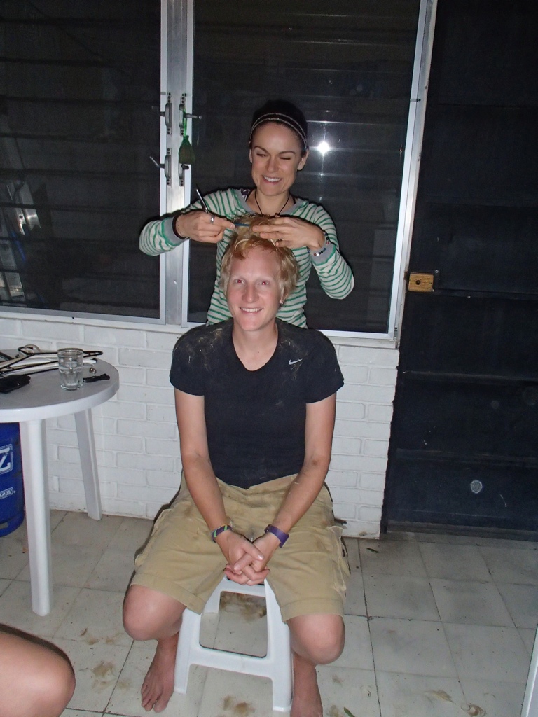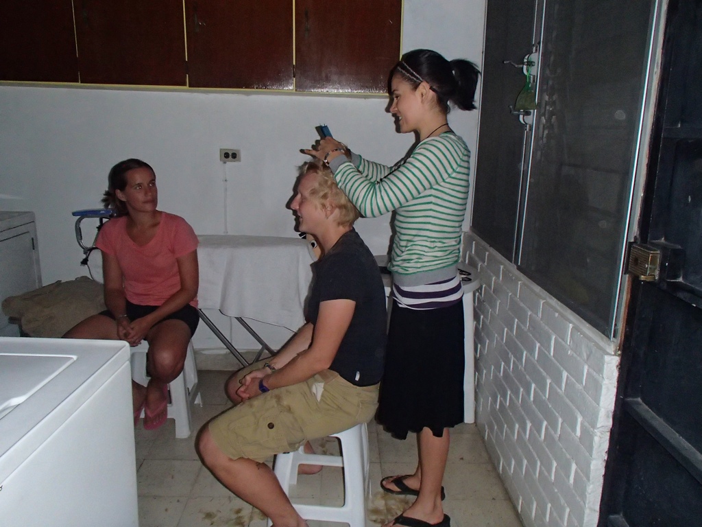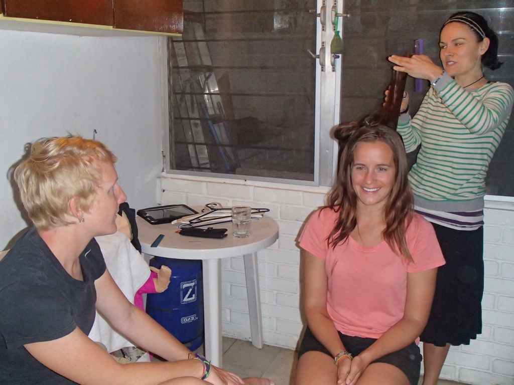 Here are two lovely ladies that were here on a mini holiday after working in the medical field in Honduras. All the way from Oregon USA, meet my first two clients who were brave enough to sit with an audience and let some backpacker play with scissors.