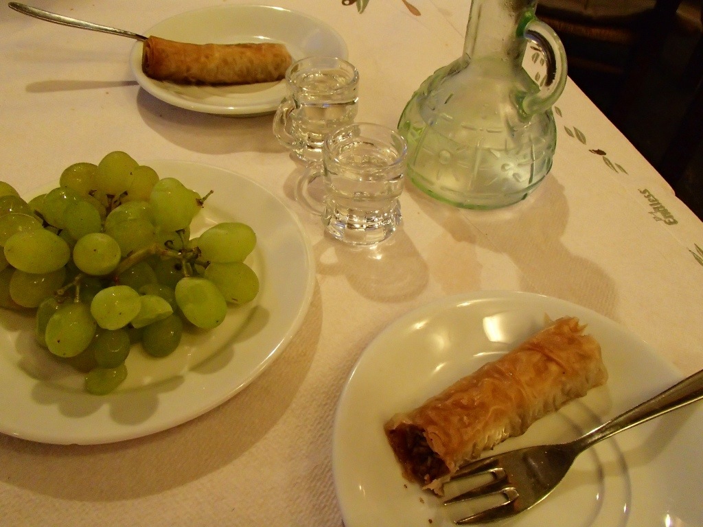 Typically, you’ll get complimentary bread and butter before every meal and after, they bring you fruit aside a bit of Raki. Also known as Tsikoudia, this strong distilled spirit contains approximately 37 percent alcohol and is produced from the must-residue of the wine-press. I was told that Cretans are often disappointed when they travel abroad and these two customs are not delivered.