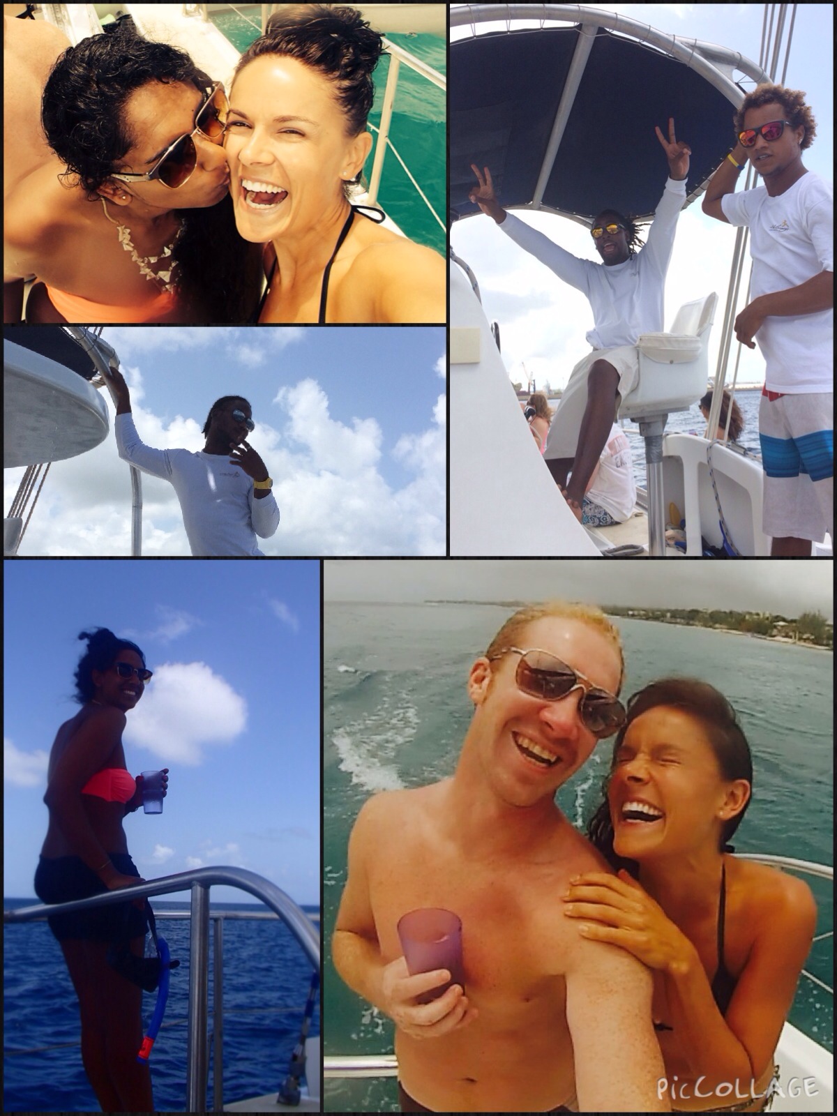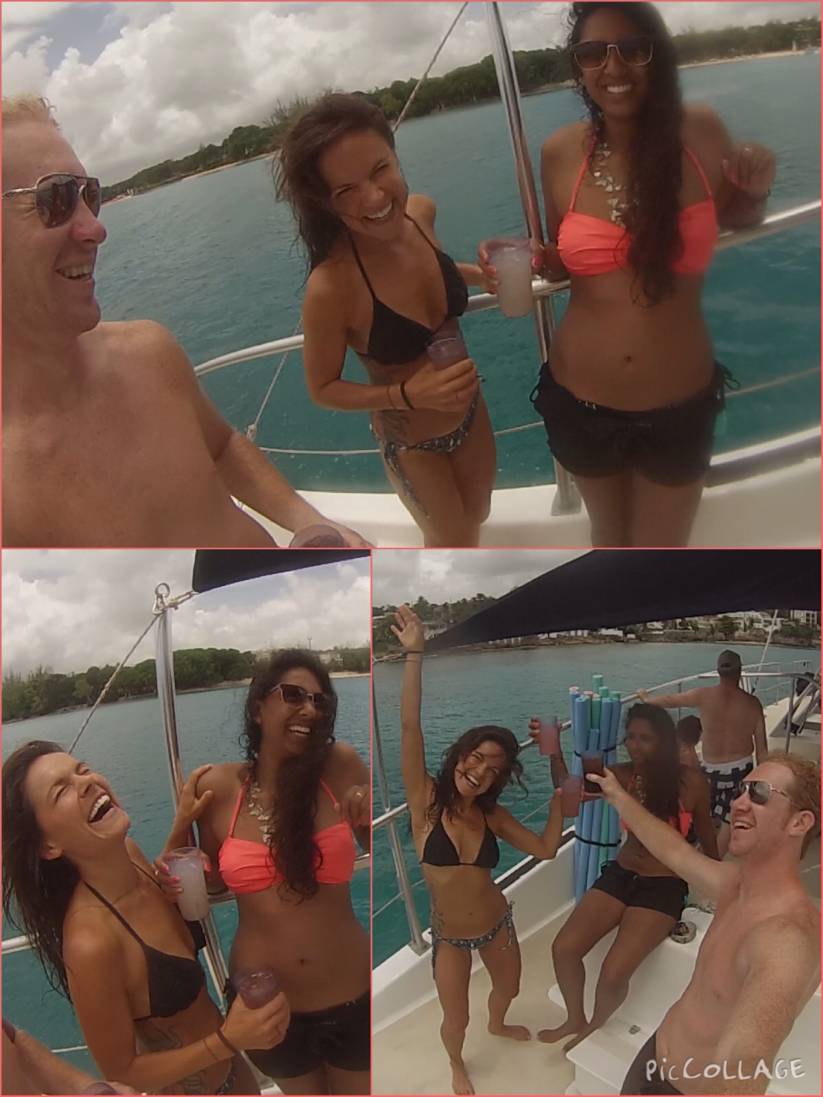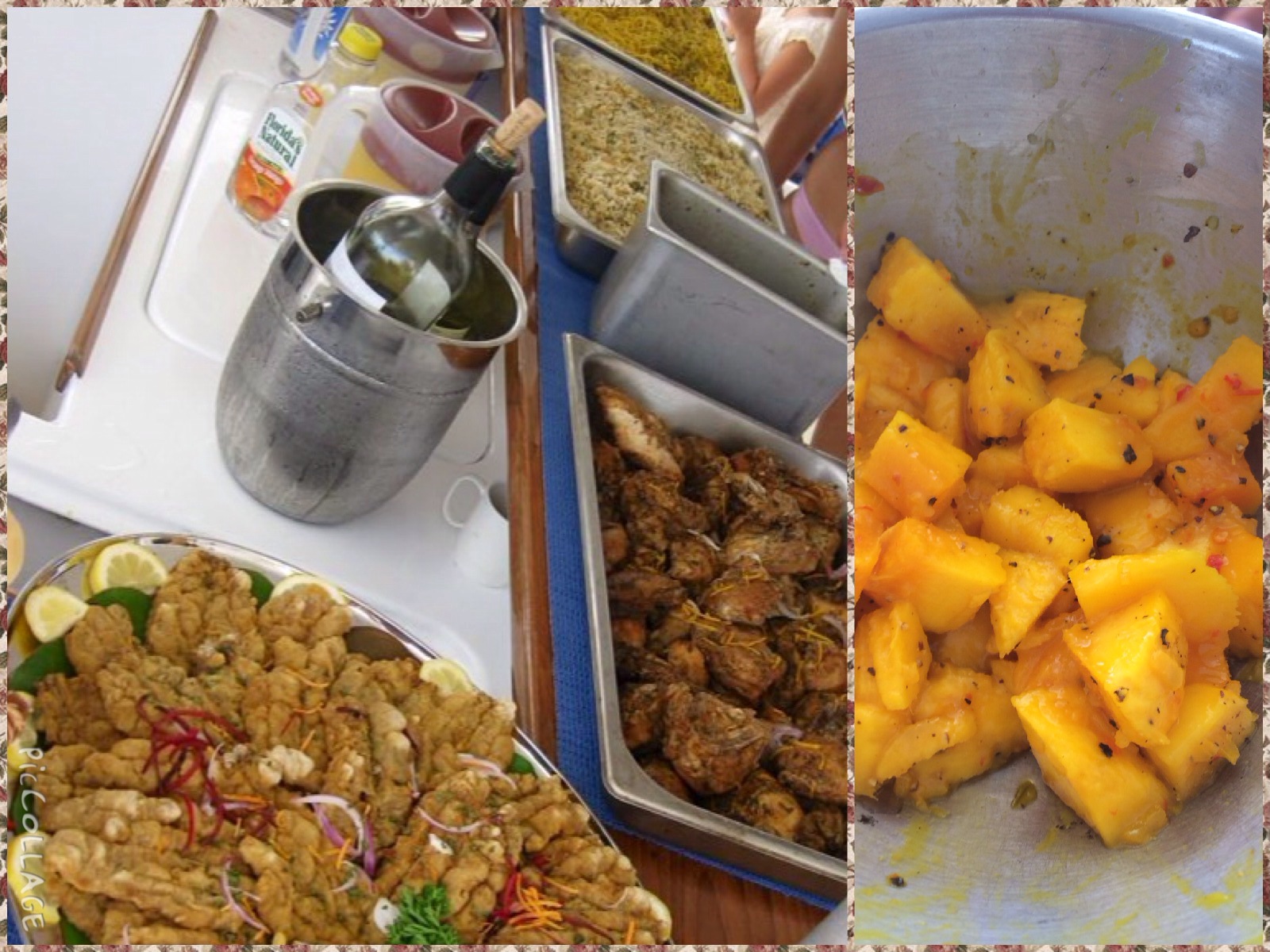 Back to the catermeran for our departure to the final stop which was more swimming and a Bajan Buffett! Flying fish, fried chicken, macaroni pie, salad, rice, veggies, spicy mango… and more adult beverages.