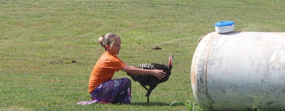 You know you’re a country kid when: A- you’re swimming in a feeding trough and B- you have to block your pet turkey from joining you!