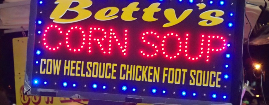 This delight includes juicy ears of corn stewing in a coconut milk/split pea broth that’s packed with flavorful seasonings and other tasty vegetables. Sometimes they’ll add dumplings with the option for pepper sauce. I have yet to meet a cup-o-corn soup that I didn’t like!