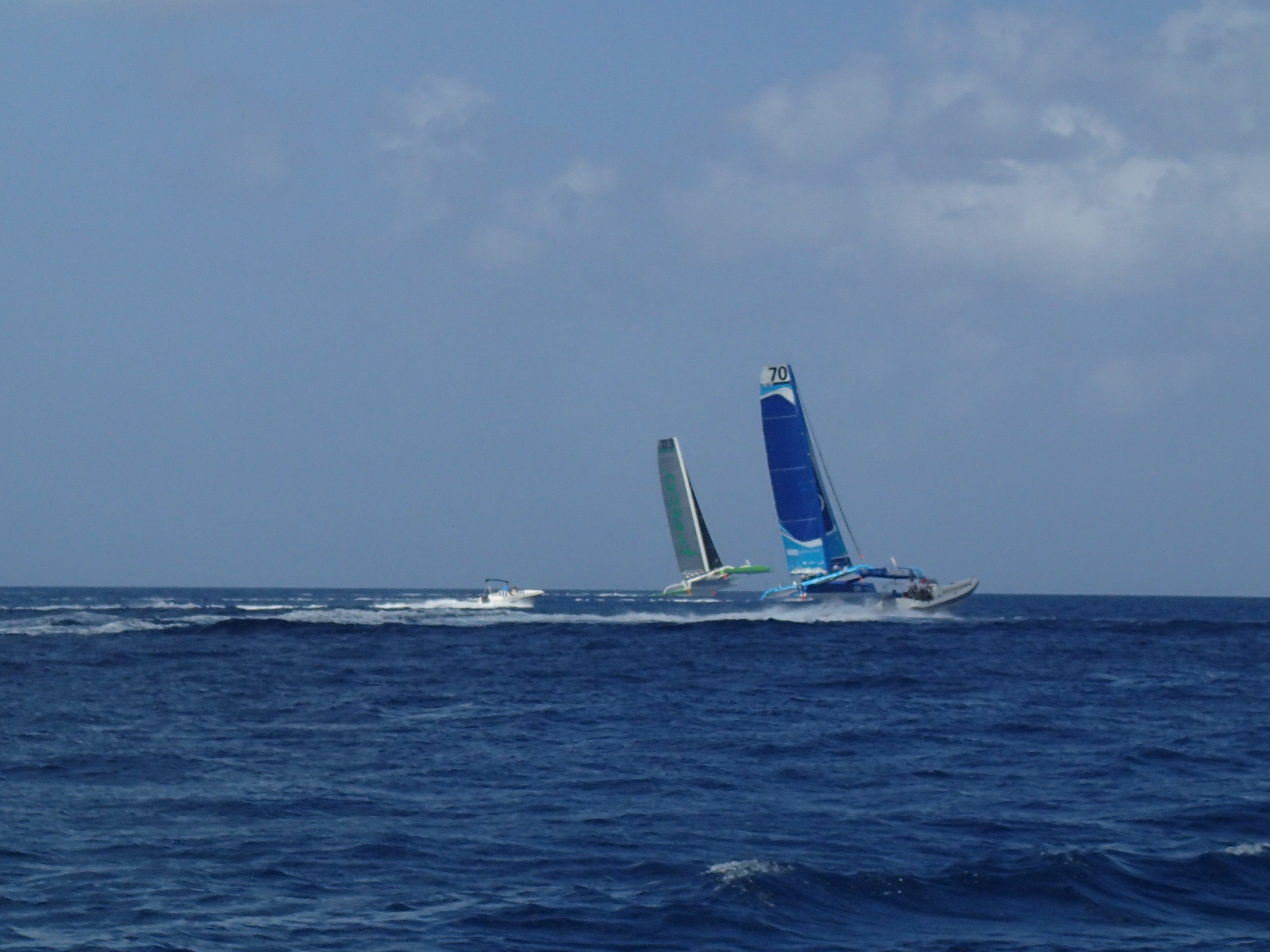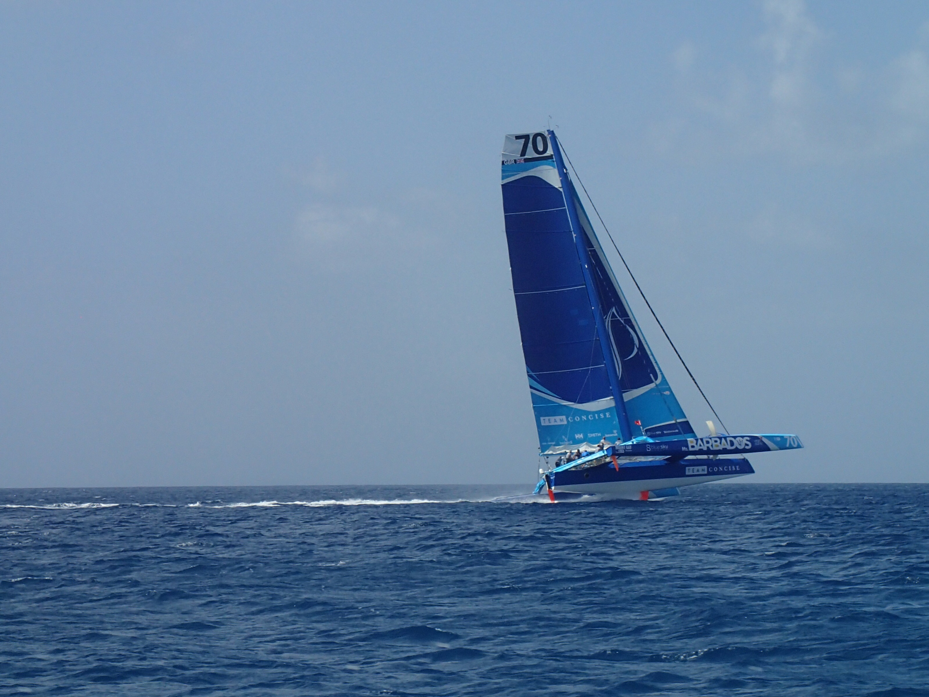 In electric blue is Ms.Barbados team Concise, led by Captain Ned Wakefield, a young British man with driven energy and smiling eyes. Along side him, a group of hand selected team members including my dear local friend Robert Povey, a lion with a heart of gold. The fierce competitor Phaedo^3 (in the bright green) is carried by an American captain Lloyd Thornburg.