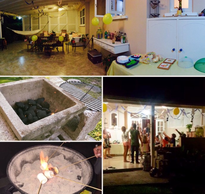 What else have we used this beautiful back area for? A party of course! Our last visitor had a birthday so we through together a barbeque (literally, Matt turned center blocks and a flower pot into a grill) and invited some friends! A few balloons, another grill and amazing people… success!