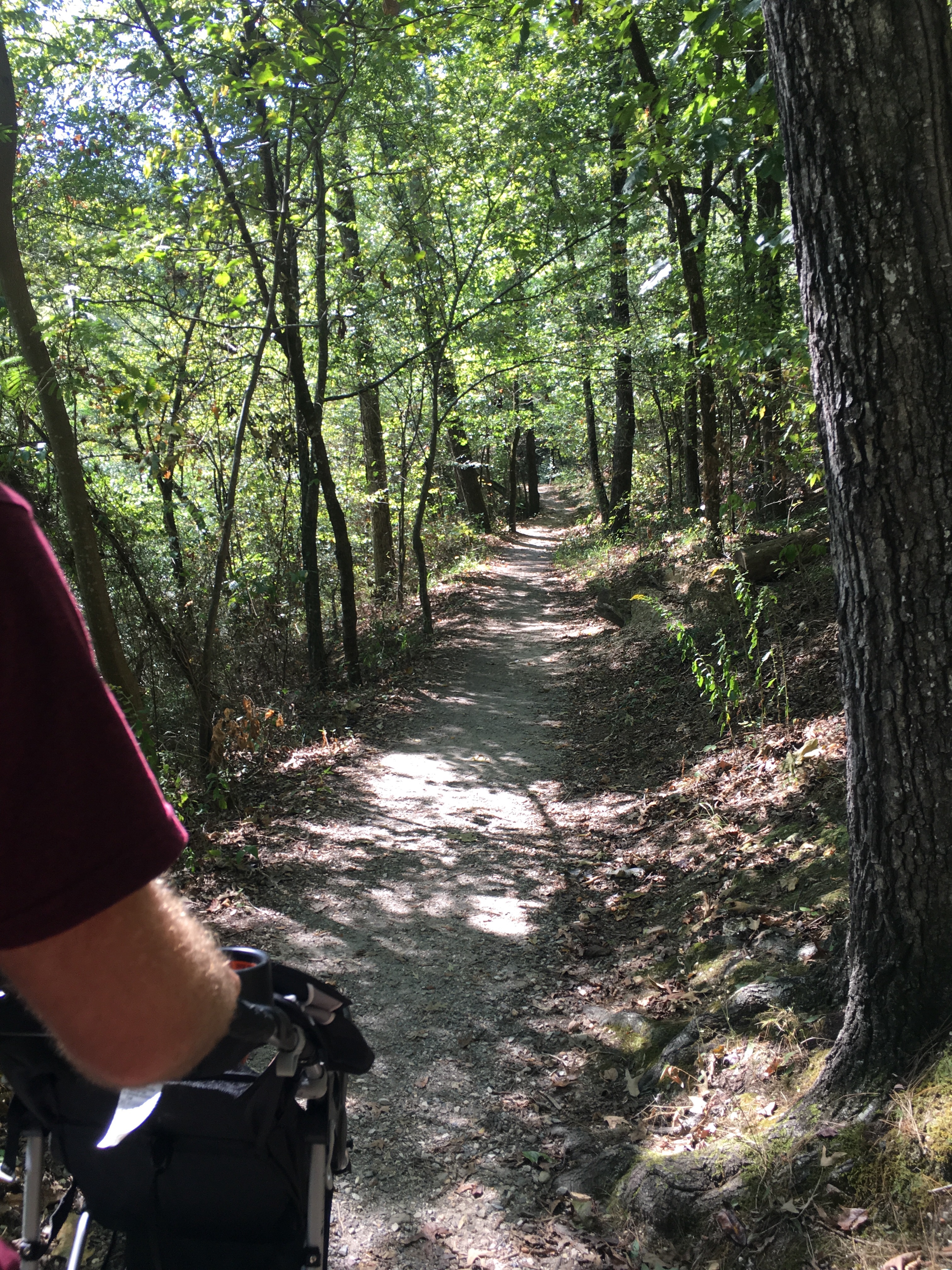 Just before leaving out of state, Shanti got one more outing with my mom. Can you see Gam Gam walking ahead of us?