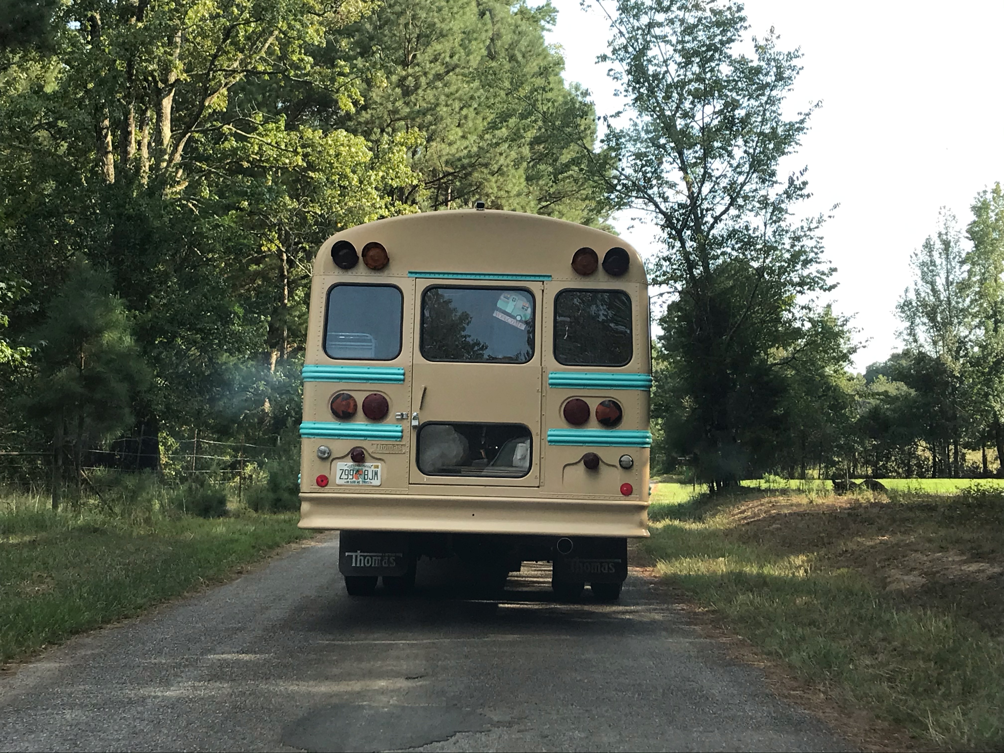 So it’s in the middle of the night and we’re in between two tiny towns on a back woods highway. Matt quickly got on his phone to find a local tow-truck company that would be willing to attack this challenge. We were so lucky. Not only did he find a company, but the kind owner also owned a school bus and was eager to help!