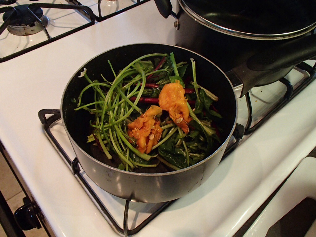 STEP 4: Boil for 20 min and strain. This is when the recipes can vary a bit. My minimal research shows that some of the more popular dishes are sweet and aim towards a pudding desert-like substance. I’m going to make a veggie cake(ish) creation, so bare with me.