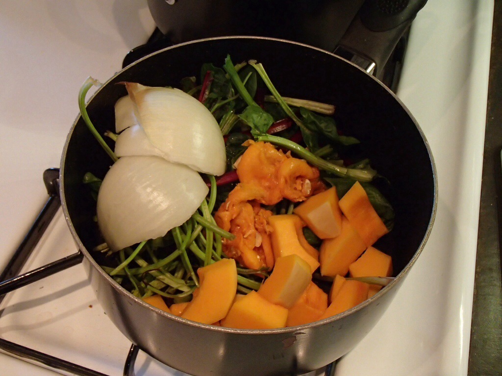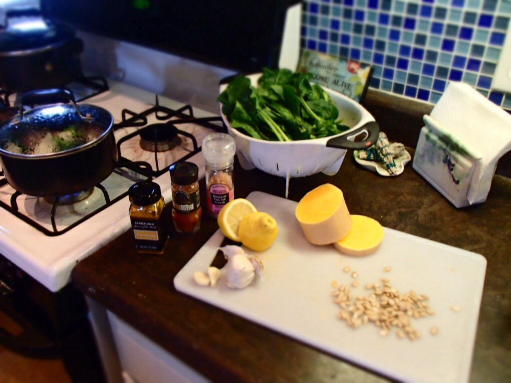 STEP 6: Put this mess aside and bring out your other ingredients. Here’s what I’m playing with today: butternut squash, sweet potato, egg, coconut milk, kale, vanilla, turmeric, ginger, ground flax seeds, cayenne pepper, himalayan salt and a splash of palm sugar.