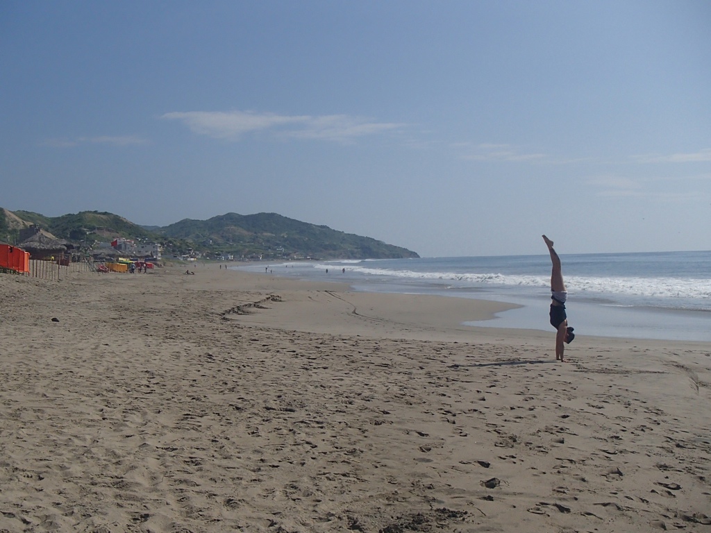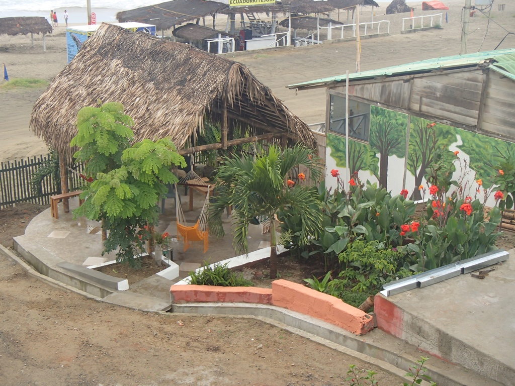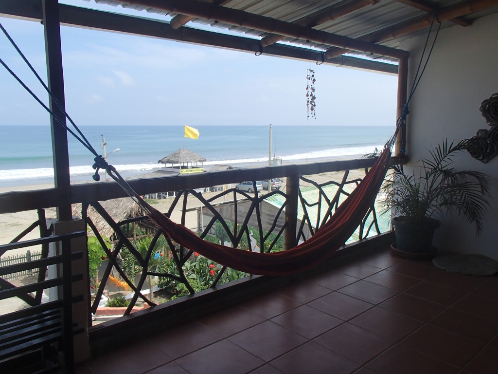 “Bus to Bahia transfer towards Manta then grab a cab to Santa Marionita. Get dropped off at the top, walk towards the nice beach and look for a fence with a sign that says Donkey Den“.