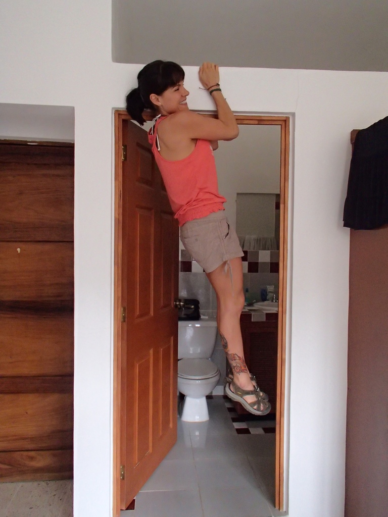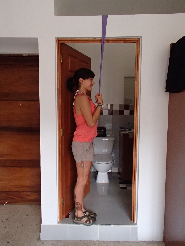 I always carry an elastic band with me (feel free to laugh here) and this bar made for a perfect base so I could due some bicep curls!
