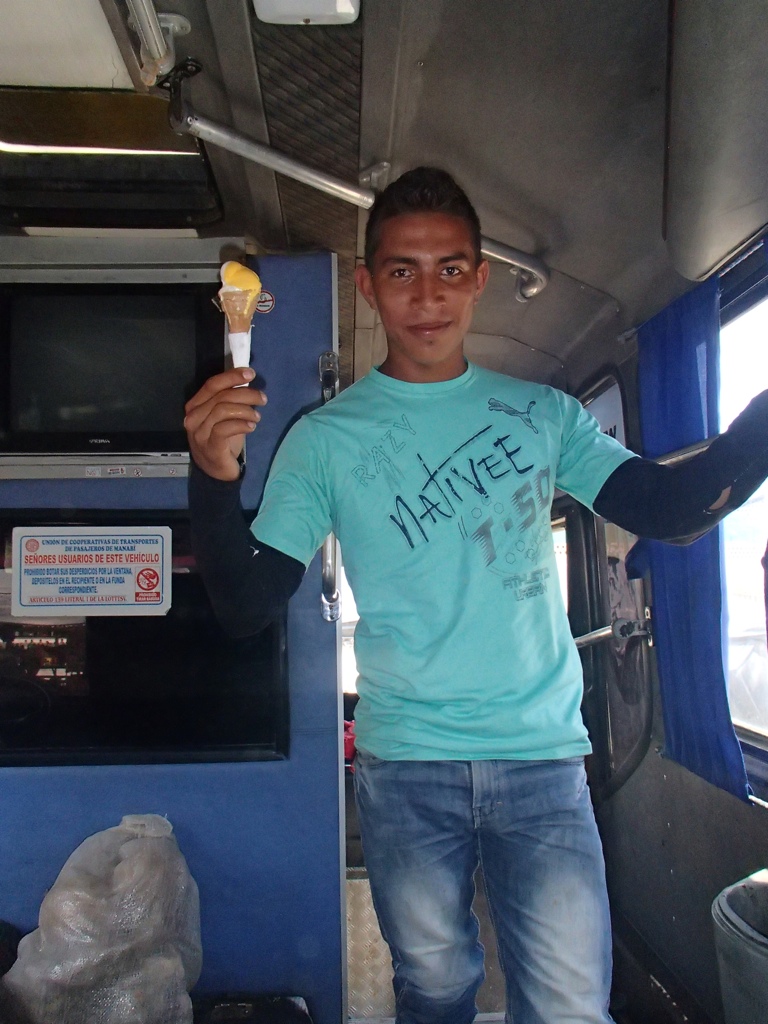 Knowing the adventure I have ahead of me, you can imagine the comfort I felt when aboard walks sweet Rocio! Remember her? She was the one that helped me get to Canoa and provided hours of Spanish practice due to her lack of English. Here we are on the last bus, followed by a photo from today.