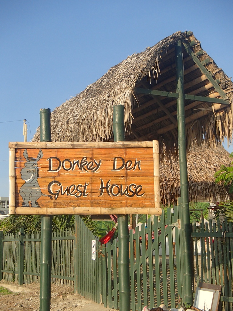 “Bus to Bahia transfer towards Manta then grab a cab to Santa Marionita. Get dropped off at the top, walk towards the nice beach and look for a fence with a sign that says Donkey Den“.