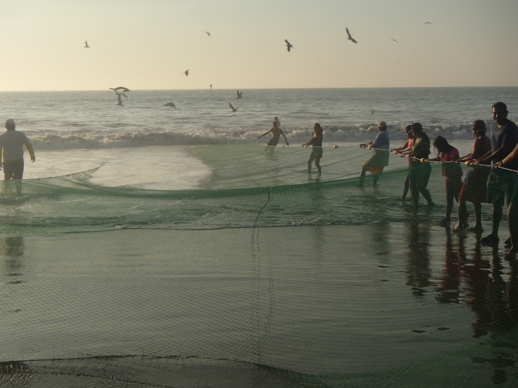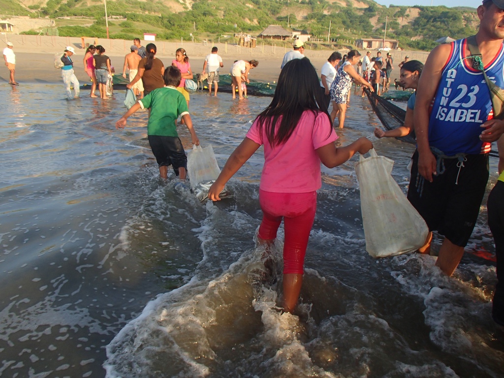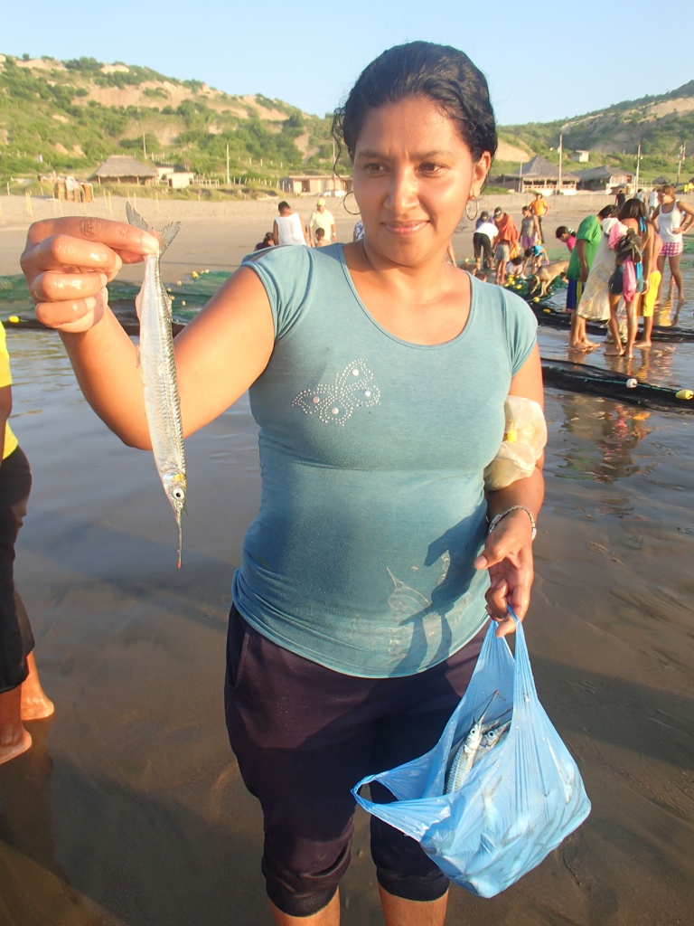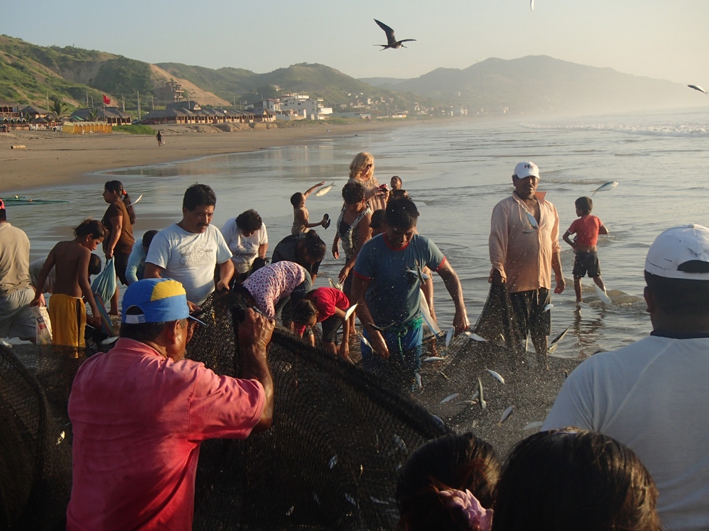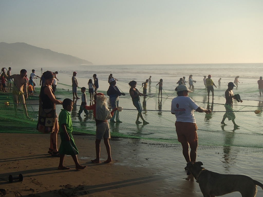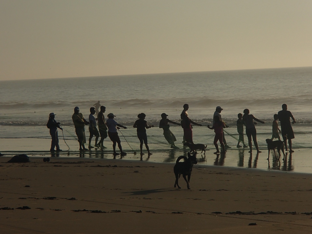 A few times a week, the locals gather with a enormous net and start with it out in the water to gather fish. Together, they pull against the wake for about an hour, slowly bringing it in towards the shore.