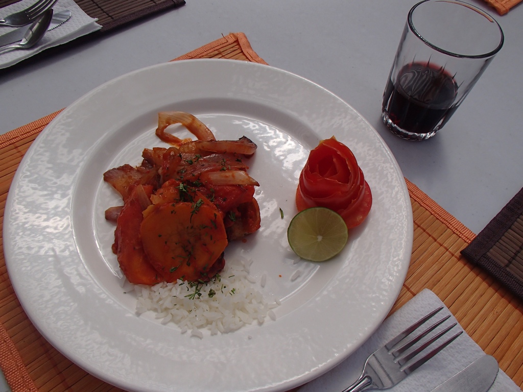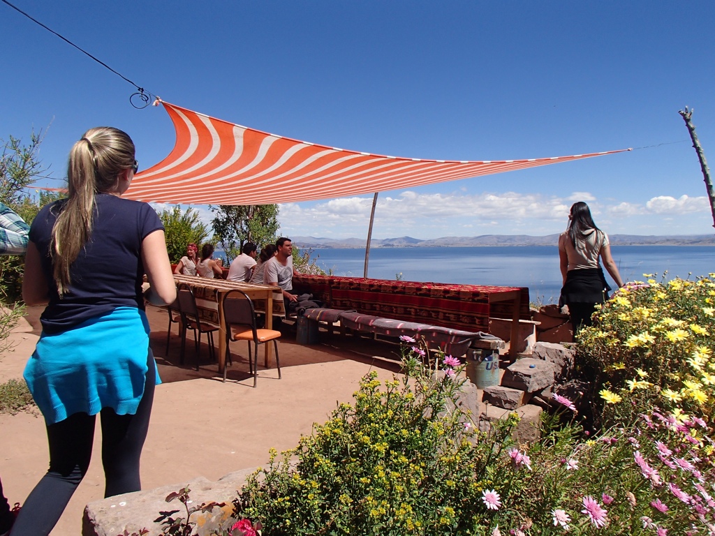 Take a seat, enjoy the view and meet Katrina and Emma. These friendly ladies were traveling here from England and made for great lunch dates! We were served quinoa soup and homemade bread with raw salsa. For the main dish, Trout that was caught that morning! There’s no electricity on the island, therefore they can’t keep fish for long resulting in the real use of the term “fresh catch of the day”. Dessert was hot tea made with coca and mint leaves.