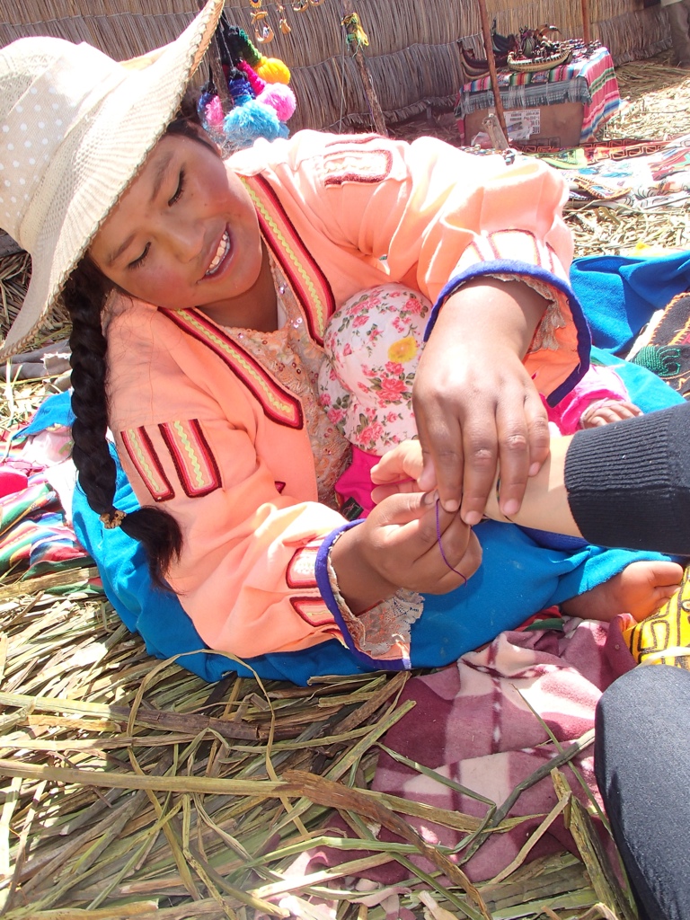 First stop is on of one of the many floating islands, home to about 2000 Uros. They live by fishing, weaving and now, tourism. As well as catching fish, they hunt birds such as seagulls, ducks and flamingos, and graze their cattle on the islets. They also run crafts stalls aimed at the numerous tourists who land on the islands each year. Although tourism provides financial opportunities for the natives, it personally gave me mixed feelings about being there. Was this their choice or am I just one more set of footprints on their sacred land?