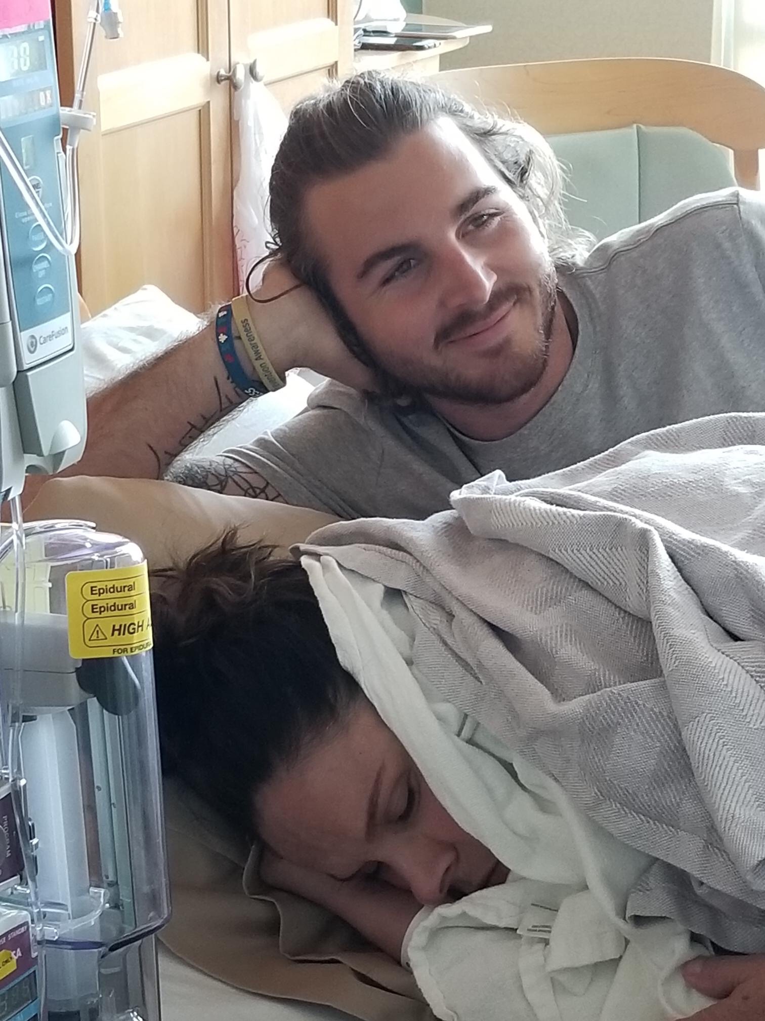 1:45-9:45 pm – For the following 8 hours I was bound to the bed due to the numbing in my lower half. Everyone watched a movie as I closed my eyes for small moments at a time and I was finally able to express what I was feeling without reaching for a breath. Although I like to do things naturally, I have to admit, this was wonderful. Well, all was wonderful except the one side effect I had NO idea was even a possibility. Uncontrollable shaking. Like when you get a chill and your teeth chatter, except this was throughout my entire upper body, jaw to core and down my arms. My amazing husband and mother took turns attempting to calm the shake or at least provide relief by rubbing my joints. It wasn’t so much painful, but exhausting! My muscular structure felt like I had been running a marathon for hours.